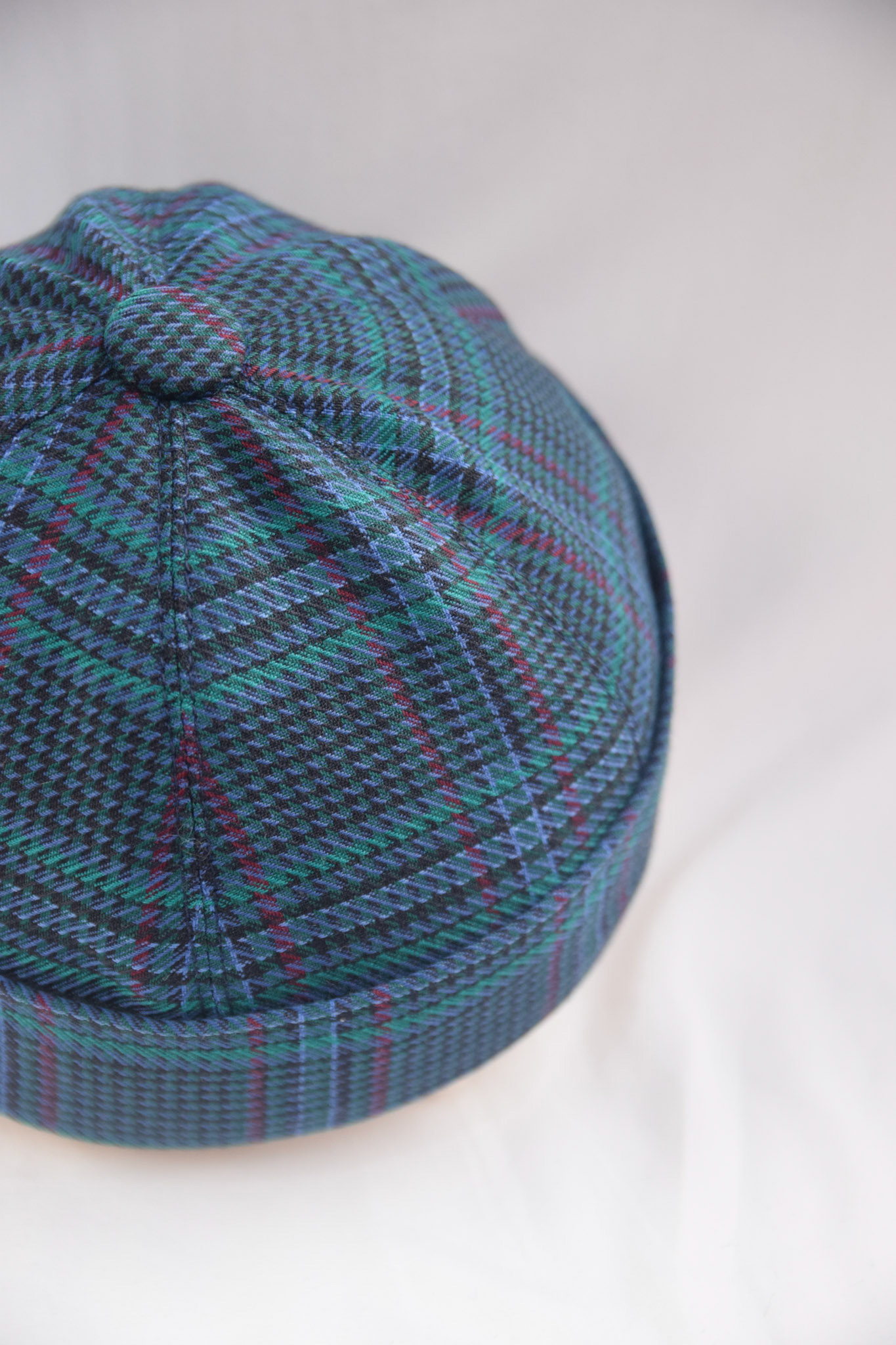 My docker caps were born from a wish to find a use for multiple second-hand wool skirts that fell to my lot. The textile were exquisite- 100% wool tartans and solids that I knew I could revive with a little bit of the right treatment.